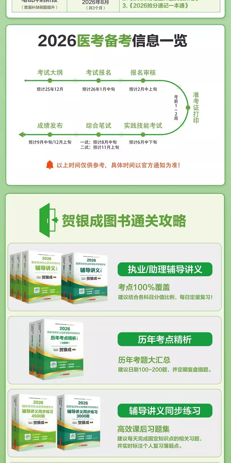 贺银成2026国家临床执业医师资格考试辅导讲义:上、中、下册
