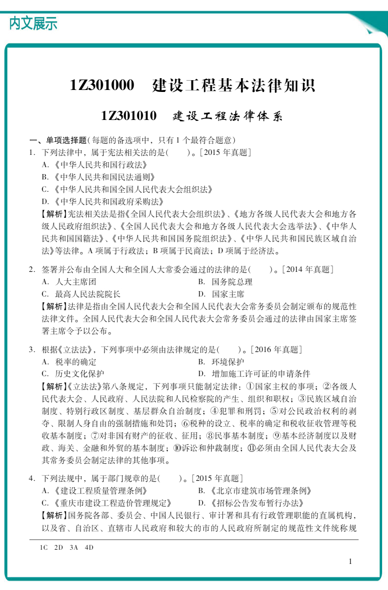 一级建造师-建设工程法规及相关知识过关必做1500题(含历年真题)(第4版)