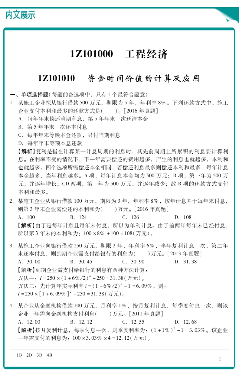 一级建造师-建设工程经济过关必做1500题(含历年真题)(第4版)